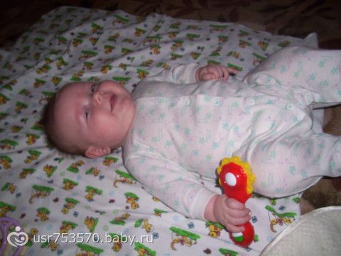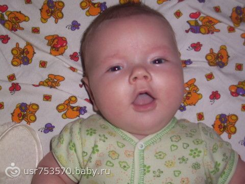 Сегодня моему золотому счастьюшку, Данилочке уже 3 месяца! Это уже серьёзная дата)Вспомним слова педиатра:«Терпите к 3 месяцам пройдёт!»Вот и у нас всё прошло.Колики покинули нас где то в 2-2.5 месяца да и не сильные они были.Цветение прошло.После визита к неврологу и курса диакарба и винпоцетина исчезли вечерние концерты.Спит мой плюшик пока что много.часиков по 17-19 в сутки.Зато утро начинается с громкого агу и лучезарной улыбки.Улыбаться малыш любит.Когда приезжала куча гостей он каждому улыбнулся, на руках у родственников не плакал.А ещё он «пищит „от бабушки)))разговаривает подолгу.Столько новых звуков издаёт, а когда получается что то громкое-так радуется.Кушать стал реже.Буквально 3 дня перерыв увеличился до 3-3.5 часов.Ночью так и просыпается каждые 3.5 часа.Иногда может поагукать в 4 утра, но не найдя поддержки сразу засыпает.Днём засыпает сам-поиграл поболтал и смотрю уже сопит или под мобиль засыпает(как же хорошо что нам его всё таки подарили!!!)Вчера сдавали кровь из пальчика.Мой маленький герой даже почти не заплакал)))Гордость такая меня взяла)))сегодня надо было сдать мочу.Хотела встать в 6 и ждать фонтанчика(ибо мочесборник не купили), но мы проспали.Встали в 7.14.я уж думала что дохлый номер, но всё же решила попробовать.Сняла подгуз вооружилась банкой-жду! и через 5 минуток полбанкия счастлива, сын ржёт лежит, а папа с банкой в руках сломя голову понёсся в поликлинику.