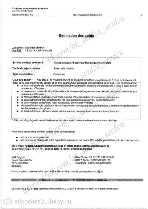 Клиника Сент-Люк в Бельгия, готова принять малышку, для пересадки печени, сумма к сбору составляет 121 445 евро.Срок до 25 января