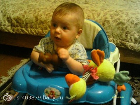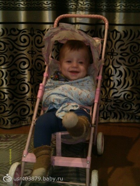 Юрочка катается на няниной коляске игрушечной)) очень она ему понравилась