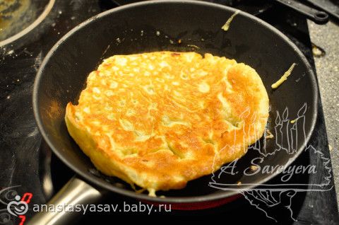 первая так себе получилась, вторая лучше, а третья вообще отлично переворачивалась)муж оценил, готовила ему еще и на обед, спасибо за рецептик)