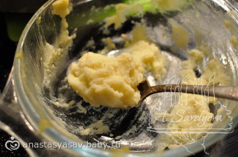 - Грамм 150-200 пюре смешать с 1 белком от яйца