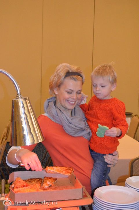 И снова были мы на празднике, только от работы мужа. Все очень понравилось. Еда особенно, был отдельный стол с г..., типа нагетсов, картохи фри, пиццы, колы, ну и прочего. Мама взяла себе кусочек пиццы, это такая редкость для меня, а ведь хочется.
