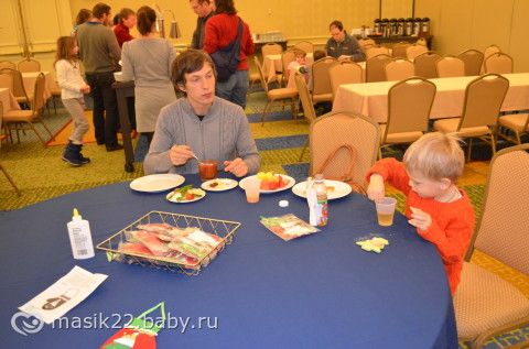 съел немного, а потом налег на фрукты и овощи. Еще на каждом столе была корзинка с заготовками для поделок,