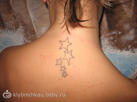 Я свои не скрывала и не скрываю от посторонних… одна у меня абстракция на внутренней стороне руки, Это символ начала моей самостоятельности… и на спине на позвоночнике, чуть ниже шеи… иероглиф дракона с самим драконом… Это мой талисман… но еще не доделано… ниже по позвоночнику будет еще три иероглифа.