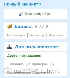 ну работа вся та же самая только сумма скачет от 0,045р до 1,3р за задание.я заработала 1 рубль, но минимальная сумма что бы скинуть на кошелек 5 р, пока у меня их нет, еще и коммисия 0,8%, почему то, но тоже нет.если кому интересно ссылку скину.++++этого сайта что я лазила на бебике и ничего не сбивалось.
