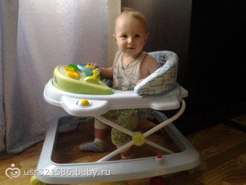 мы ползаем, сидим и стоит уопоры с 6 месяцев. стоит как то плохо ноги слабые тоже вертиться но может и упасть. если его отпустить не надолго может постоят ьсекунды две. в ходунках бегает но не очень их любит. дома проверил уже все даже духовку. говорит мама.папа. баба, кака, ням. тоже плачет когда его ругаю. любит новые игрушки, но буквально 5 минут.