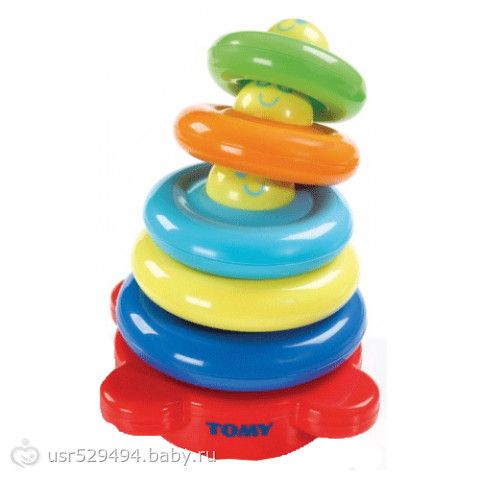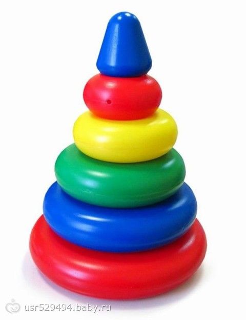 У нас сначала была с обычным штырем в форме конуса, ему так удобнее по началу складывать круги по возростанию