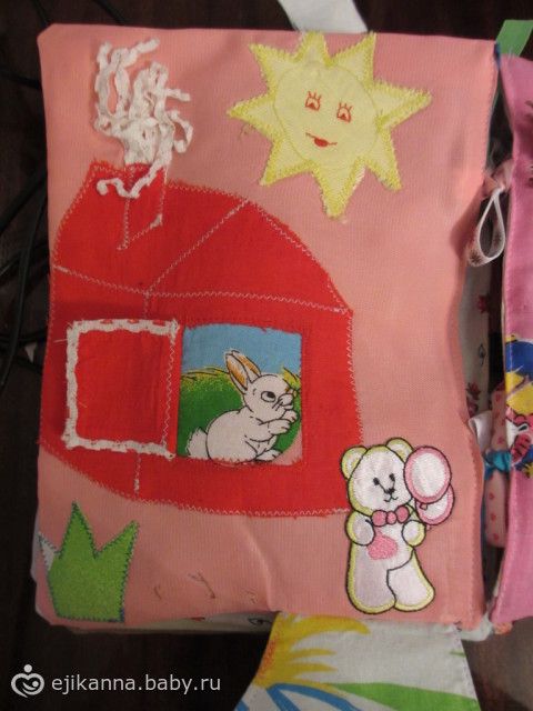Я тоже сама дочке шила такую книжку. Страницу с одной историей шила за вечер, когда дочка спала. Несколько страниц сделала шуршащими.
