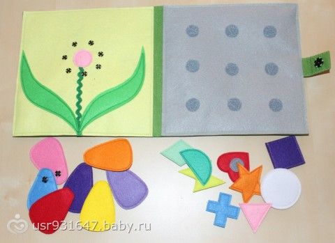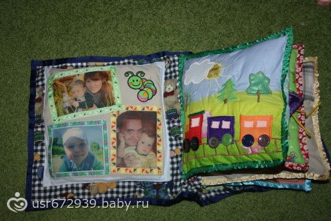 Такая книжка будет развивать малыша, а также станет очень полезной на прогулке или, например, в поликлинике, когда, в ожидании приема, нужно чем-то занять ребенка.