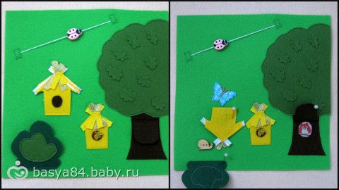 Стоит иметь в виду, что деткам очень нравятся различные спрятанные фигурки, например, поднимаешь листочек, а под ним жучок, открываешь окошко, а за ним зайчик сидит.