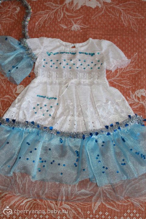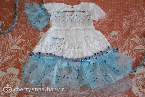 Девочки нужен совет. У нас на новый год девочки должны быть снежинками или бусинками если нет белого платья. У нас белое платье есть, но оно короткое, только попу прикрывает. Так вот решила я переделать.