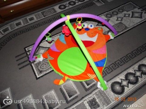 у нас тини лав, музыка есть и ладошкой по панельке ударяешь играет музыка, размер конечно побольше, у нас можно с бортиками а можно без- для малыша значения не имеет, а вот шелустяшки и пикалки очень нравятся. может часа 2 проваляться на нем