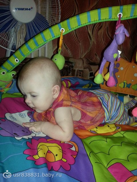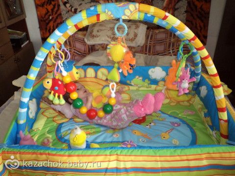 у нас тини лав, музыка есть и ладошкой по панельке ударяешь играет музыка, размер конечно побольше, у нас можно с бортиками а можно без- для малыша значения не имеет, а вот шелустяшки и пикалки очень нравятся. может часа 2 проваляться на нем