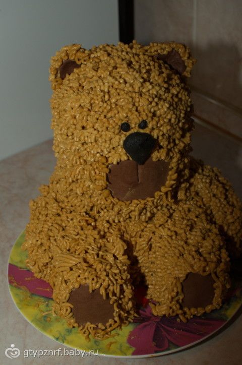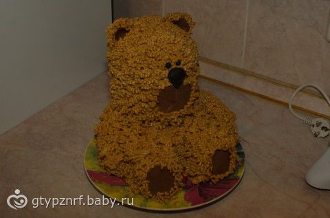 Вот решила похвалиться)) У сынулика был годик, и я решила торт на его годовасие делать сама, мастику отмела сразу — нам она не очень нравится да и страшновато было в первый раз за мастику браться)) Выбор пал на медовик в форме медведя)) Девочки строго не судите — все таки это мой первый такой тортик)))