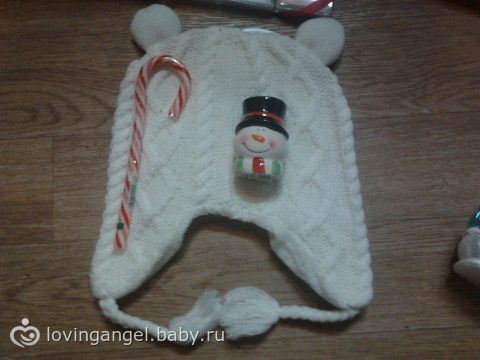 Дальше идет ну просто наимелейшая шапочка для моего цветочка на следующий год. Мягусенькая внутри. ММММ. Солонка в виде снеговичка. Жаль кухни у меня нет, но пользоваться буду. Поставлю в комнате, все равно едим с мужем в ней) Иииии… тадададам… конфета. АААА, это вообще сердце посылки и восторга полные штаны. Такие во всех зарубежных фильмах лопают на рождество. Ну и я хочу. И тут… муж сказал что с меня подарков достаточно и отобрал ( Ну мы потолкались малец, попинали друг друга, поломали конфету в потасовке и одну отломаную часть я таки утащила себе. Ааа. Она мятная, суперский мятный леденец. Пишу и жую эту конфетку. Мы любим мяту и сладкоежки еще те. Класс.