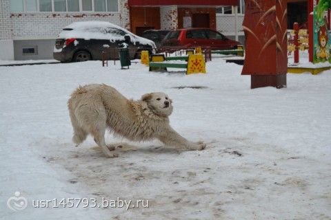 Защитник блин!))))))))) От проходящих мимо прохожих, нас охраняет) Зубки немного оскалил)))