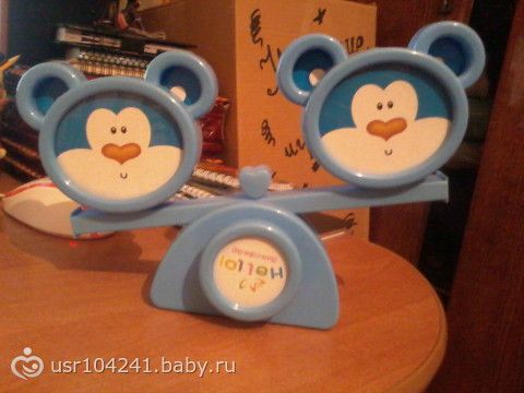 Вот на днях купила фоторамку, но никак не могу распечатать фотки Андрюшки чтоб в неё вставить...Рамка прикольная, она заводится и играет музыка, а сами мишки как на качельке то подымаются, то опускаются… Но больше всего меня обрадовала цена, я её забрала всего лишь за 10 грн...