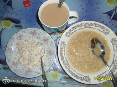 Завтрак: кашка с медом, кофе с молоком, пастила