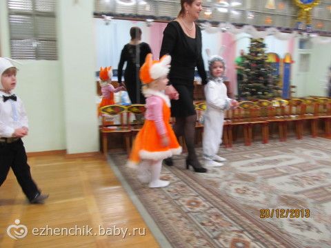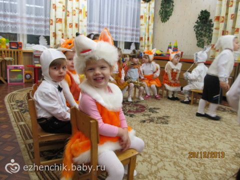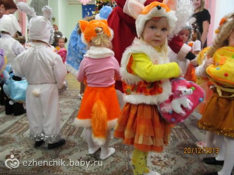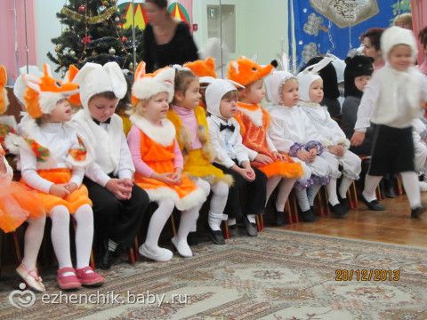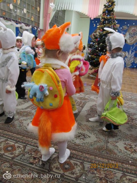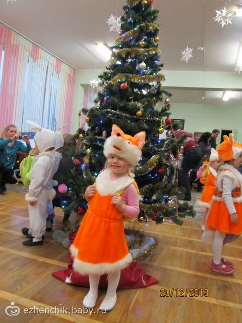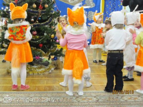 Все действие было поставленно в виде новогодней сказки. девочки были лисоньками, мальчики-зайчиками. была у нас и большая Лиса, и Дед Мороз со Снегурочкой. все не проф.актёры, свои, садовские. но детям хватило и этого чтоб поверить в чудо.