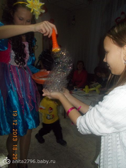 это еще в самом начале, потом устал и ревел до конца праздника, пока конфетку не дали