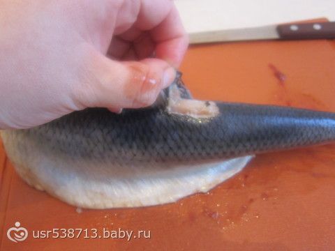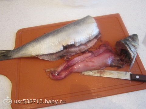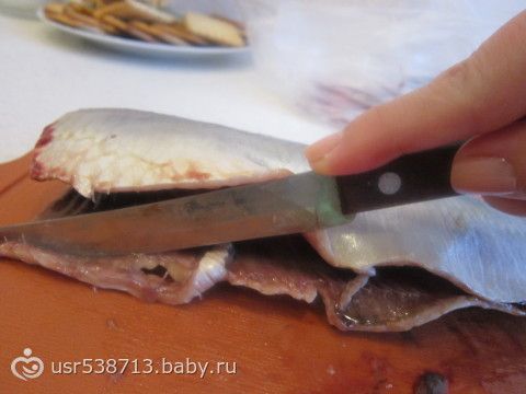 Итак.Берем селедку, отрезаем голову, вспарываем брюшко, удаляем кишки и молоки или икру, затем отрезаем края вспоротого брюшка, это необходимо для того, чтобы легко можно было снять шкурку.Затем вырываем в буквальном смысле плавник сверху, и с этого места начинаем снимать шкурку, у хорошей селедки она снимается одним пластом. Затем разрезаем на порционные кусочки и каждый кусочек режем вдоль позвоночника, теперь ловким движением руки снимаем обе половинки с позвоночника, таким образом все крупные косточки оказываются снаружи и их легко вытащить, укладываем кусочки сельди в селедочницу, сверху заливаем маринадом, я его готовлю заранее из репчатого лука, перца черного молотого и масла подсолнечного, оставляем минут на 40 и приятного аппетита! Моя селедочка улетает со стола первой, хотя казалось бы простое блюдо, но под картошечку да с укропчиком-деликатес! а чтобы запах селедки не витал по всей кухне я купила пластиковую разделочную доску, мою ее обычным гелем для мытья посуды, а затем обтираю уксусом, и запаха как не бывало!