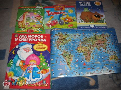 еще развивашки-здесь понравилась книга постер с многоразовыми наклейками -дед мороз и снегурка. сначала стишки потом все в постер большой разворачивается клеится на шкаф например и украшаете елку наклейками с игрушками, подарки на сани и под елку и гостей на праздник клеим тоже… все многоразовое.вообщем с сыном уже опробовали.узнали, что такое подарки и как в хоровод зверей ставить… и карта эта маленькая настольная, слишком мелко…