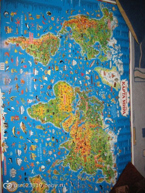 эта настенная на картоне детская карта мира с животными, достопримечательностями и прочим, супер вещь!!!