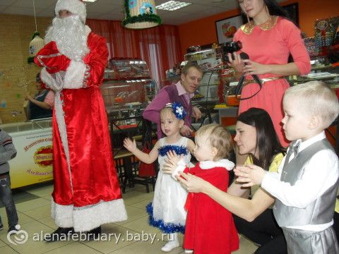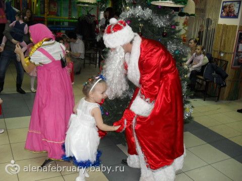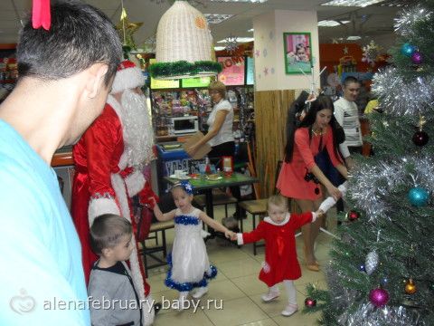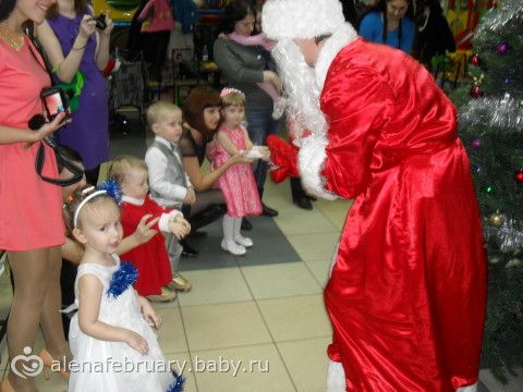 Дед Мороз стал деток в хоровод строить, и Поленька первая ему руку дала! так и водила с ним хороводы!!! Умничка моя!