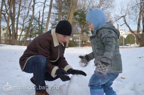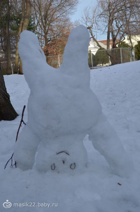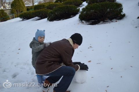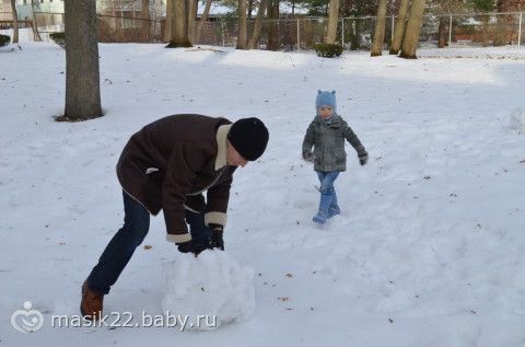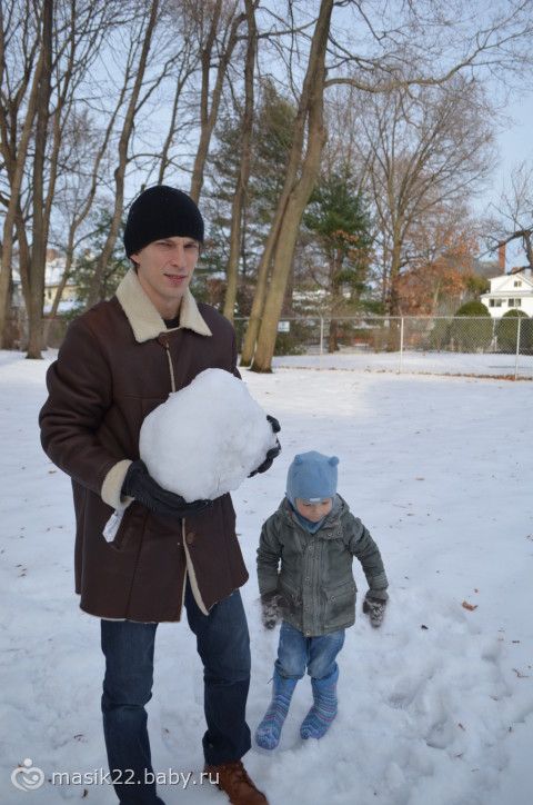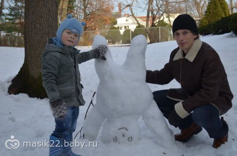 Мы с Веняхой постоянно лепим снеговиков, т.к. из джима идем парком и это как бы вместо прогулки у нас.:-) В общем, маське обычные снеговики надоели, и они с папой сегодня около дома забацали вот такого.:-) Лепили с Вени.:-)