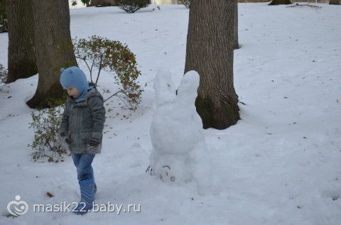 снеговик — зачетный!!! Аутфит у Вени — супер, мама все в тон подобрала. Молодец! а у нас снег растаял — нема снега больше(