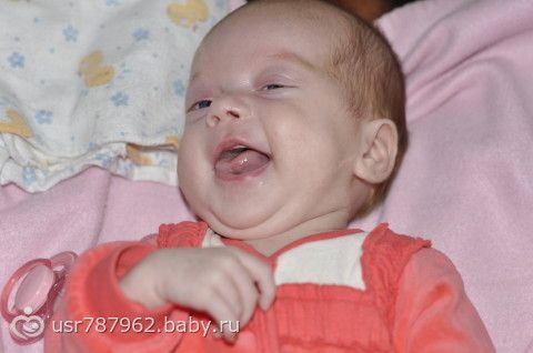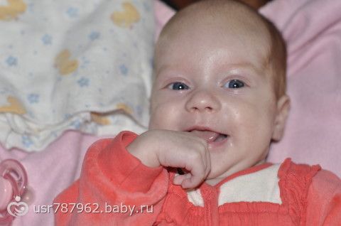 Ну что сказать, малышка очень требует с ней говорить, сама гулюкает прикольно, смеется постоянно, если я ухожу начинает меня искать, например у бабушки на руках, а когда ворачиваюсь, сразу смеется! Очень любит с папулей мыться! Днем приучила, если хочет спать засыпает сама, а на ночь качаю и то не всегда, спиит всю ночь! Постоянно чешет десна язычком, либо соской, а если я ей соской почешу дак вообще тащится, аж глаза закатывает, ну и слюни рекой!