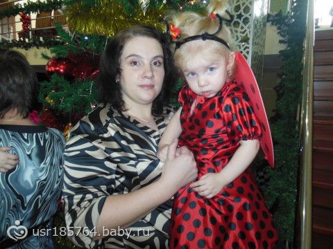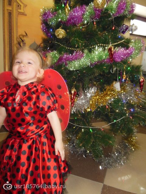… вот и мы там побывали на первой нашей ёлке)))) я знала, что ничего хорошего с нашей Сашкой не выйдет, но сходили)) я сшила ей костюм божьей коровки и отправились сегодня утром на встречу с Дедом Морозом и Снегурочкой… конечно для такого мероприятия мы ещё малы и толком не поняли, что происходило, немного посмотрели концерт, а потом пошли в разнос, бегали, прыгали играли с детками)))) мы с папой устали жуть как, да и доча, только домой приехала и уснула))) немного фото, потому что поймать Сашу в кадре очень сложно, вертится, крутится, строит рожицы и ни как не хочет фотографироваться))))