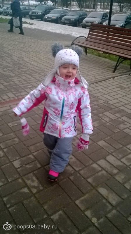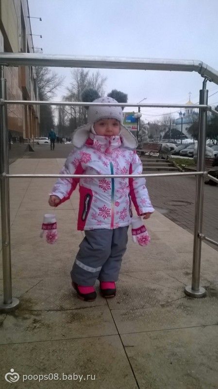 Теперь Поля одета у нас с головы до пят))) Купили мы в воскресенье ей Костюм зимний, точнее куртку и брюки по отдельности, но смотрятся они клево вместе. как раз как я хотела — верх бело-розовый, низ серый. Только вот при примерке на брюках я сняла хлястик силиконовый, который на ножку одевается, один, чтоб натянуть штанину поверх сапога… потом наш папа переодевал Полю в старый комплект, а новый вместе с хлястиком отдал продавцу. Та отнесла на кассу… В общем отсутствие хлястика мы заметили уже дома поздно вечером…