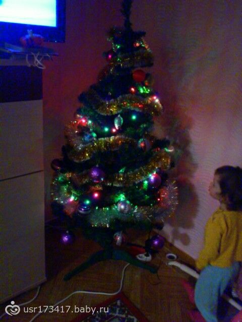 старшему в первый нг как он пошел было 1,5 года.я себе резала салаты на кухне, муж помогал, а сынок крутился под ногами.но тут мы, что то увлеклись… глядь, а ребенка то нету на кухне… забегаем в комнату, а сынуля сидит и играет в стеклышки от разбитых шариков, и в момент когда мы заходили тянул его ко рту.буквально за пару минут успел снять и разбить 4 шарика.я конечно чуть не поседела!!! в этом году купили елочку искуственную 120 см и поставили её на стенку от греха подальше.кстати ту же елку 5-го января я все таки снесла собой в свой день рождения))там весело мне еще никогда не было))