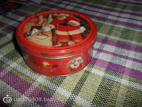 А это мне шкатулочка для рукоделия!!! Пока там печенье, но это не на долго! Ждем папу! Ян, я мечтала попробовать печенье из жестяной баночки, но не могла найти никак! Мне еще мама рассказывала, что такое существует