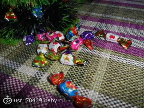 А это конфетки, чтобы я тоже сделала ёлочку? Ян, а на что ты их крепила?