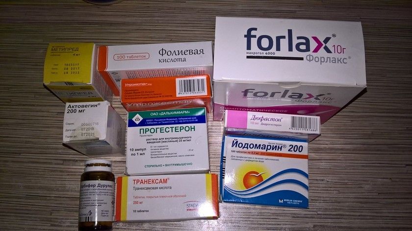 Прогестерон в уколах (6 ампул), железо Сорбифер Дурулес остались. Таблетки Транексам целая упаковка.