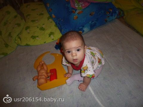 Девочки нам сегодня пол годаВес и рост не знаем в четверг пойдем узнавать. На сегодня мы умеем ползать садимся сами но еще руками впереди держится, хватаемся у опоры встать. Кушаем каши, пюрехи, супчик, смесь.Очень понравилось ей печенько в молочке.Сегодня попробовали творожок Тема тоже понравился.Ну пока что все.