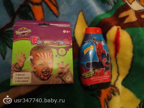 краски-грим (Лёнечка уже испробовал) и его ЛЮБИМАЯ шампунька)