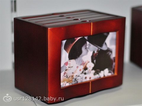 шкатулка для фоток. С двух сторон рамочки, а сверху вытаскиваются 5 альбомов (они получается стоят корешками вверх)