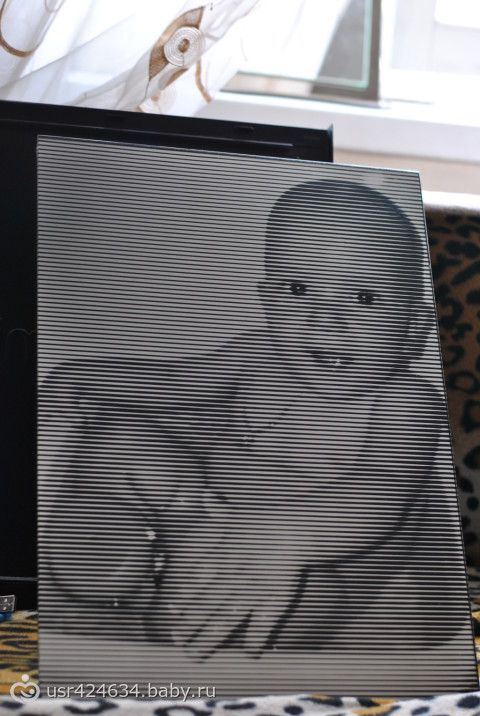 нам в прошлом году дарили камень на подставке с нашим фото))) Смотрится здорово. Размером с ладонь.