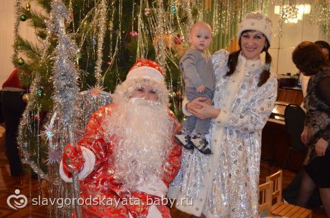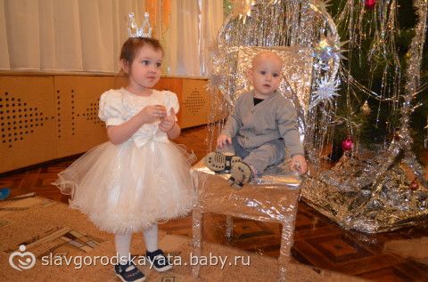 Нас родителей сначала завели в зал, усадили и закрыли шторкой тюлевой чтоб дети не видели. Потом деток запустили все за ручки, много их так, все смешные такие, красивые в костюмах, сами ничего не поймут, все с такими выражениями лица! Прыгали, танцевали, в общем делали все что им скажут! В конце позвали деда мороза, он пришёл раздал им подарки! Это им понравилось, конечно больше всего! Потом вышли родители, пофоткались и разбежались по домам, а Полина наотрез отказалась фотографиролваться а тем более с дедом морозом, она главное подарок получила и все, ей больше ничего не надо было, стояла и орала: всё, пошли домой! Кое как в конце уговорила, когда все разошлись. Мы ходили вдвоём с Колей, он на удивление сидел все время спокойно и с интересом наблюдал за происходящим.
