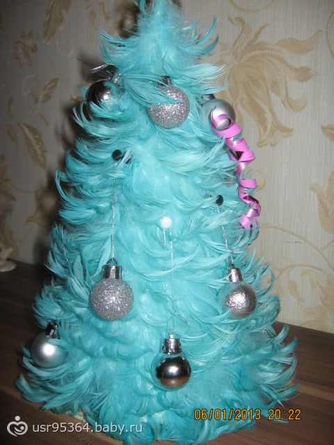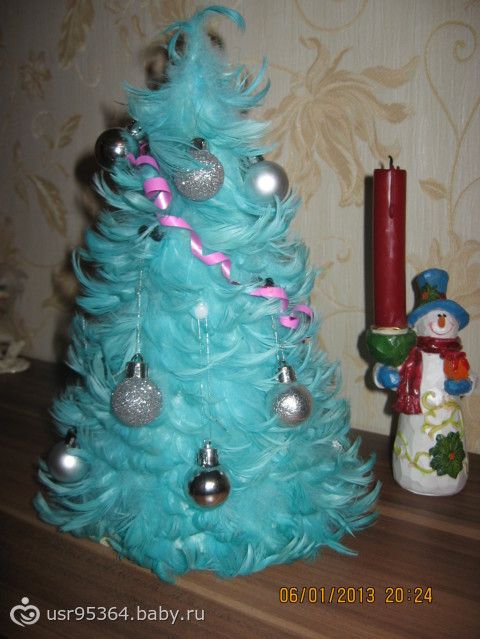 Внутри конус из картона, верх клеяли перья (окрашены предварительно зеленкой)