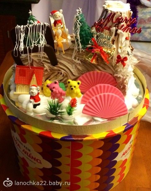Свою семью порадовала новым тортиком в Рождественском стиле (желтые коржи, йогуртовый крем с вишней, который как всегда получился слишком жидким… оххх, не знаю в чем проблема, но никак мне не дается йогуртовый крем!)