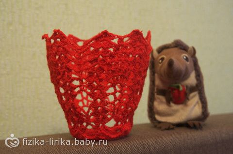 Вязала я колокольчик, но навязался он достаточно большой, 12 см. Накрахмалила на цветочном горшке, и получилась совсем непонятная штука. Вот что из нее делать? может вазочку какую-то или пусть будет колокольчиком?
