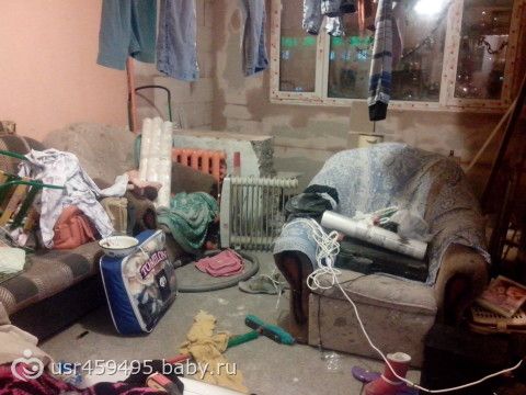 Только прошу по поводу грязи тапок не кидать у нас ремонт балкона седня только заштукатурили!… и вот разб раю бардак… выхожу с ванны и… где она спит?))