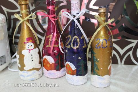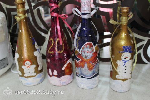 вот это красотища!!! Молодец, из такие бутылок намного приятнее пить будет, и выбрасывать жалко потом!!! В подарок если самое то, замечательный презент будет!!! Ну вот в нашем полку золотых ручек прибыло!!!