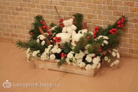 У нас елка искусственная, а запахе ели очень хочется. Поэтому каждый год делаю композицию на стол, и нг ужин у нас всегда при свечах))) В этом году помогала дочка, вот что получилось: