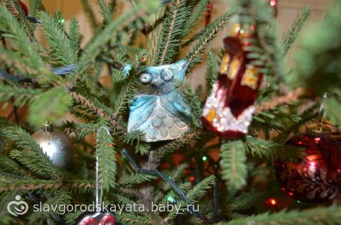А эту сову мы с Полиной слепили Полина сама раскрашивала еще и ничего получилось на ёлочке хорошо смотрится!