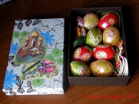 Для второго набора мы празднично оформили коробочку для набора в подарок, который мы назвали «Наряди свое пасхальное деревце» (фото справа). Для коробочки мы использовали упаковку от туалетной воды, упаковочную бумагу, тематические наклейки и бусины в форме миниатюрных пасхальных яиц – на внутренней части коробочки – сюрприз :-)!